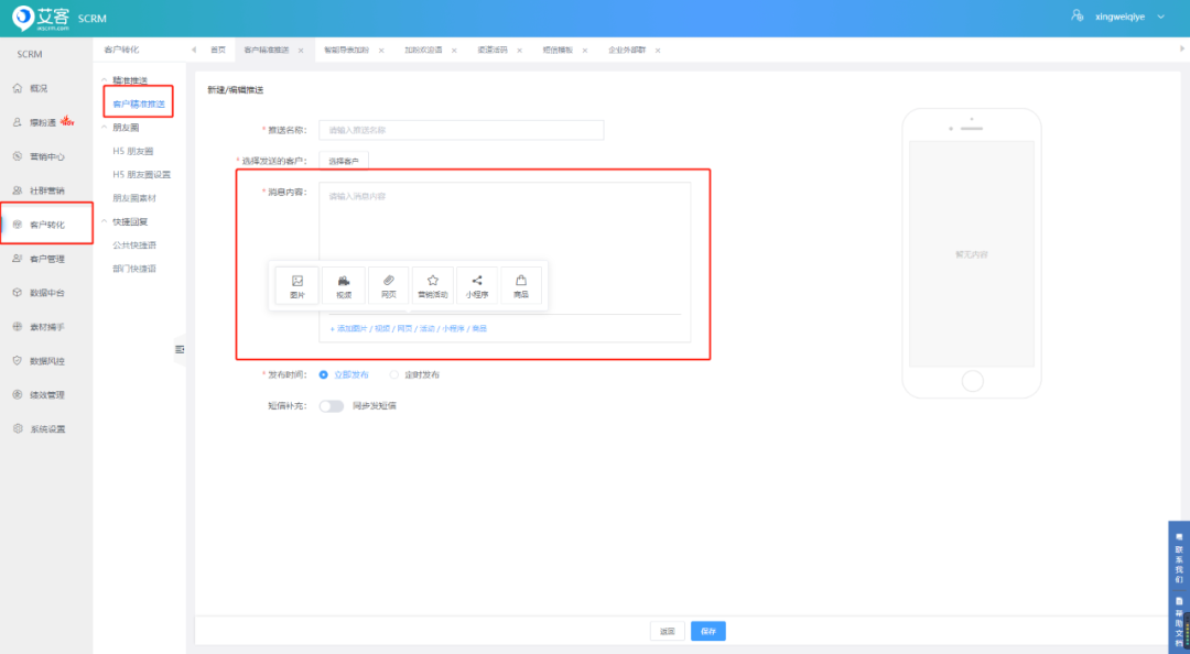 页面路径:客户转化-客户精准推送-新建