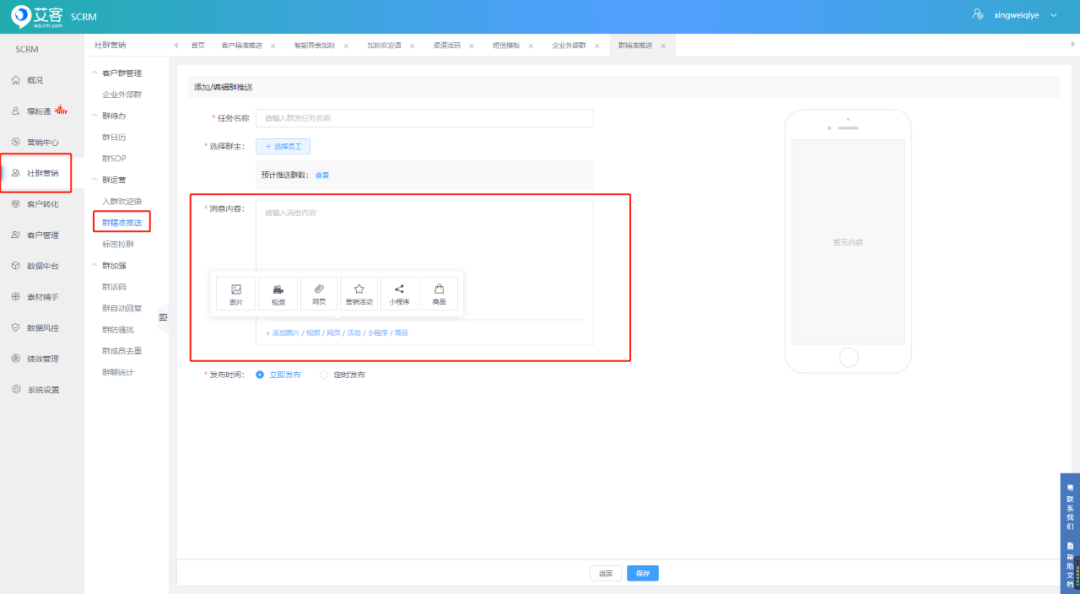 页面路径:社群营销-群精准推送-新增
