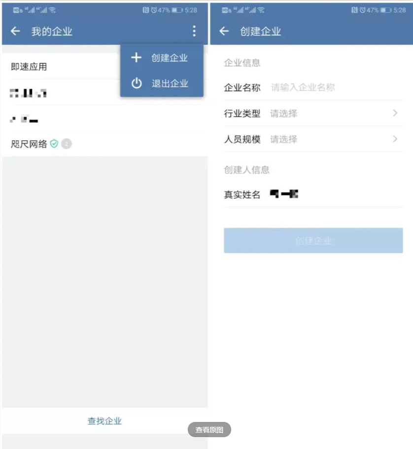 手机注册:在手机应用商店下载企业微信,点击立即注册企业微信,手机端打开企业微信,然后在页面的右下角点击“我的”,最后一行选择“设置”,然后点击“切换身份”,选择“创建企业”。