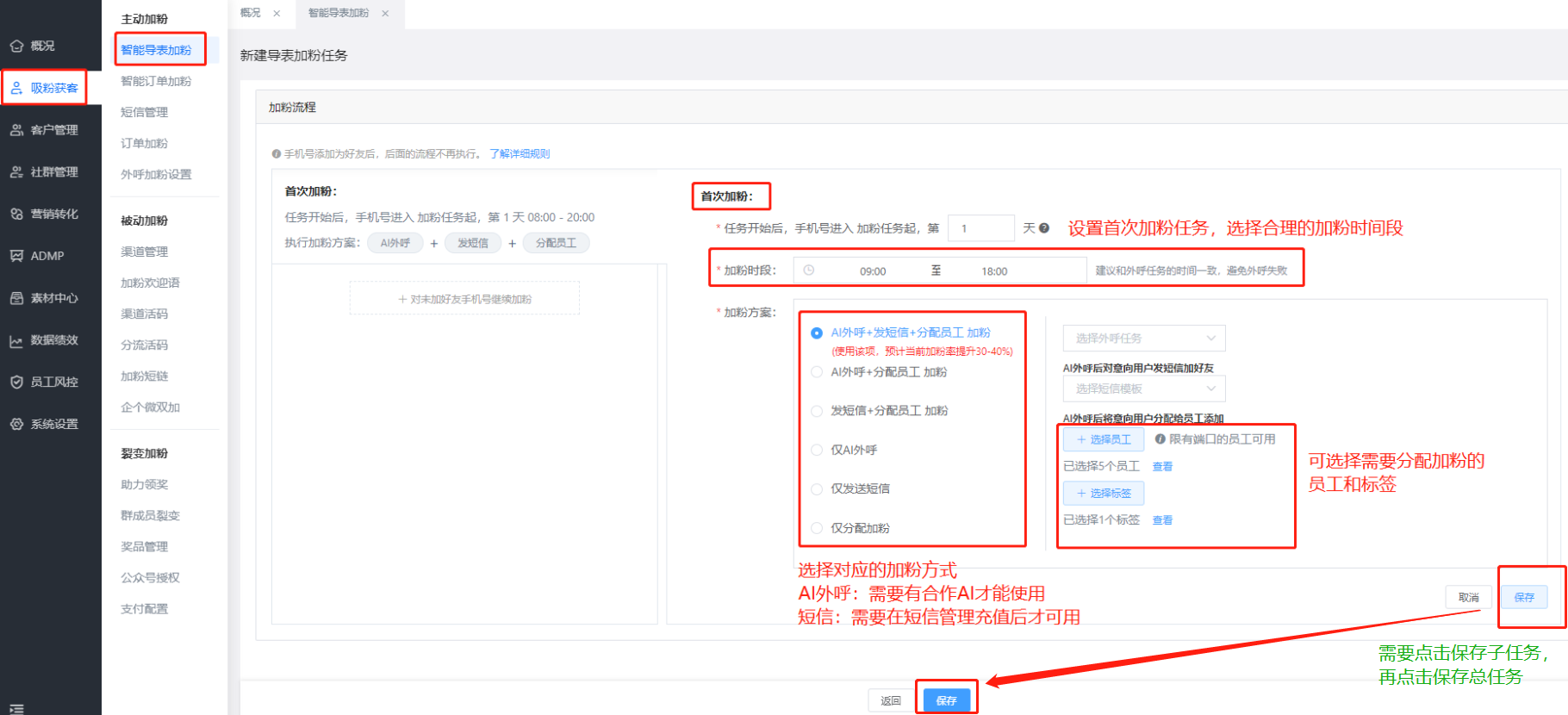 除此之外,还可以使用富联注册的批量加好友功能,也称为智能导表加粉功能,企业批量导入客户手机号进富联注册后台,然后分配给不同员工进行加粉任务,各个员工可以设置加粉SOP流程,导入客户手机第一次加粉失败后,间隔多天后执行第二次加粉任务。大大提升加粉效率。