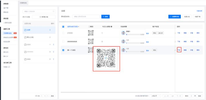 在“无限群活码”内可下载活码,用于线上、线下宣传使用。