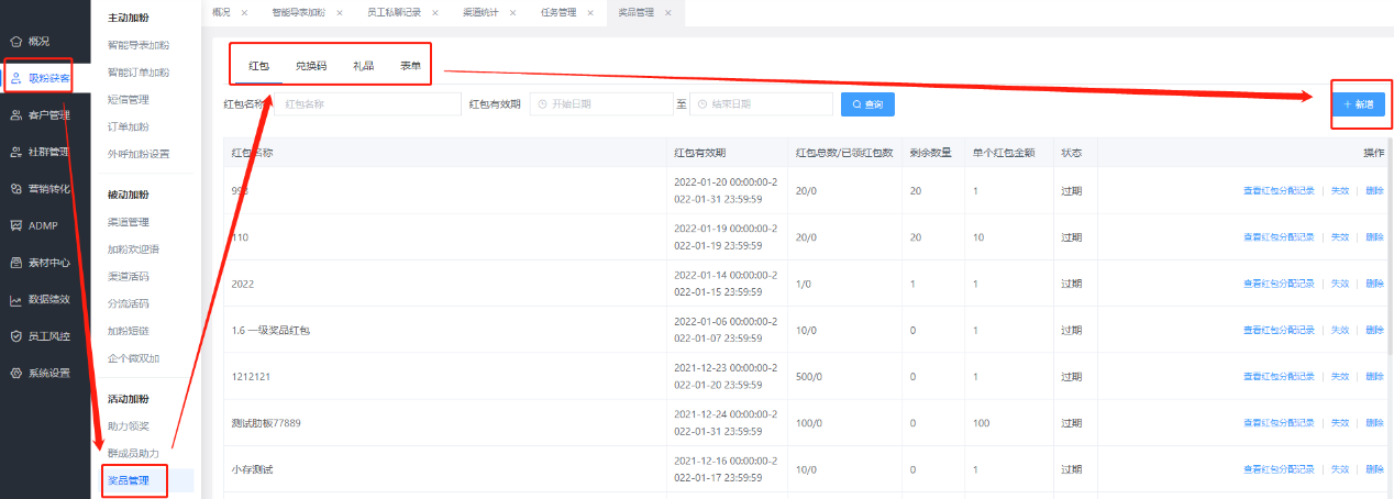 奖品类型可以设置成红包、兑换码、礼品或者表单等。